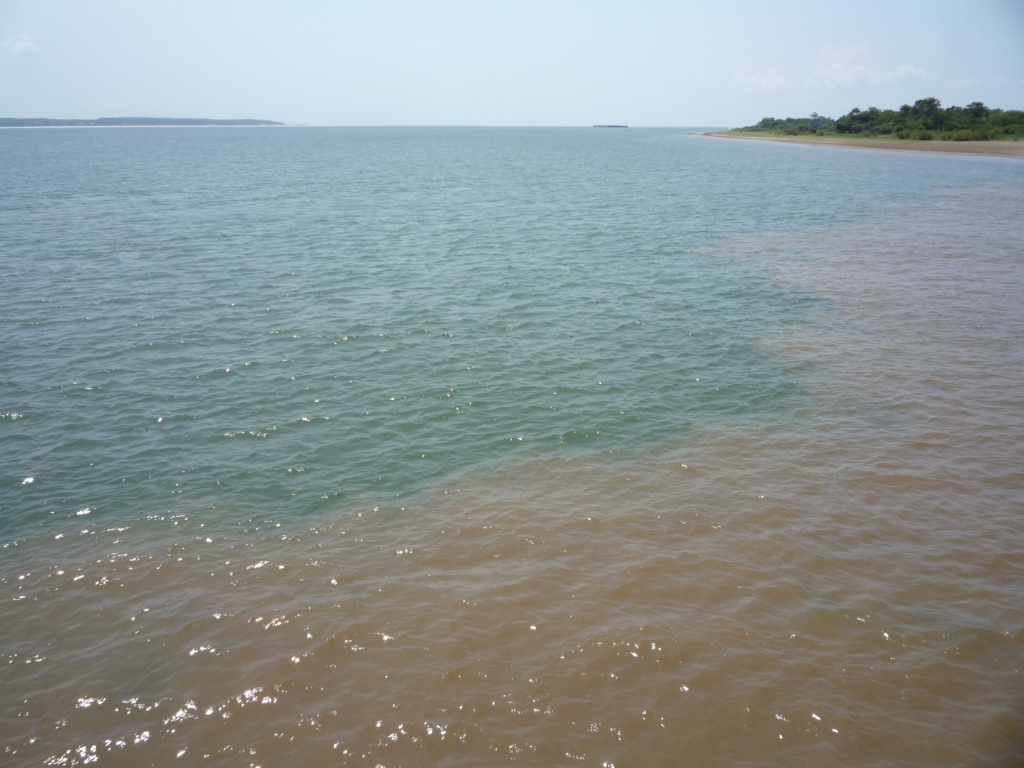 Le lendemain réveil à 5h45 pour prendre le 1er bus direction Santarem, un bordel car avec tous les travailleurs, nos sacs ne trouvent pas leur place ... On est au port à 8h et retrouvons Jess & Julien qui finalement prennent le même bateau que nous et Etienne. Embarquement à 10h et départ à 13 ... Le bateau, Ana Beatriz III, est plus grand que le précédent avec deux niveaux de pont pour les hamacs et un pont supérieur. A peu près 300 personnes donc 300 hamacs, un joyeux bordel ... En quittant Santarem on assiste à un phénomène magnifique, le partage des eaux ; le rio Tapajòs couleur clair s'écoule le long de l'Amazone sans se mélanger pendant un certain temps ... C'est une histoire de température, densité et vitesse d'écoulement ... Magique !