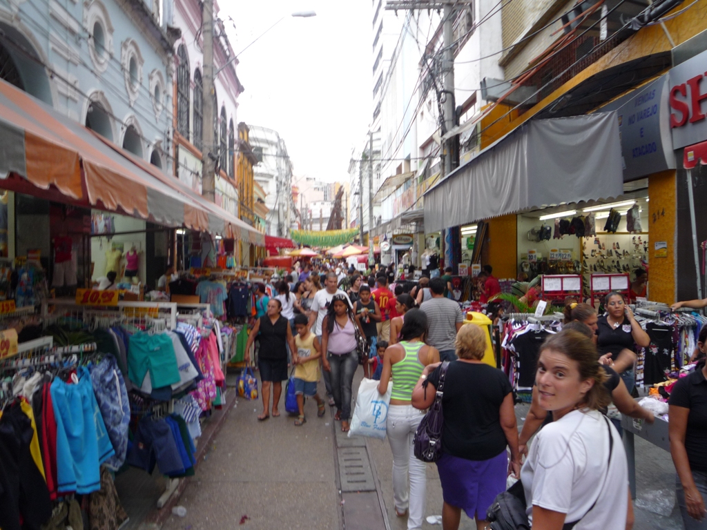On visite notre quartier, c'est dingue les magasins sont hyper spécialisés et très fournis ! Il y a la rue des bonbons, la rue des fournitures scolaire, la rue des accessoires pour fête, la rue des hamacs, la rue des jeux vidéos, des maillots, des objets de plage, du bricolage, des lunettes (celle-là est très chic) ... Le marché aussi est dingue avec des étals de fruits, légumes, viandes, poissons, herbes médicinales, ... En fait Manaus est une zone franche où tous les business sont bons à faire !