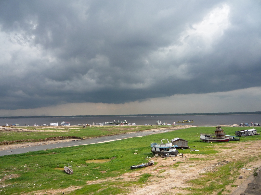 Arrivée à Manaus avec le levé du soleil, la ville s'étend sur plusieurs kilomètres le long du rio Negro, il y a des usines énormes, des bateaux énormes ... C'est la première ville industrielle de fabrication de matériel électronique au Brésil !!