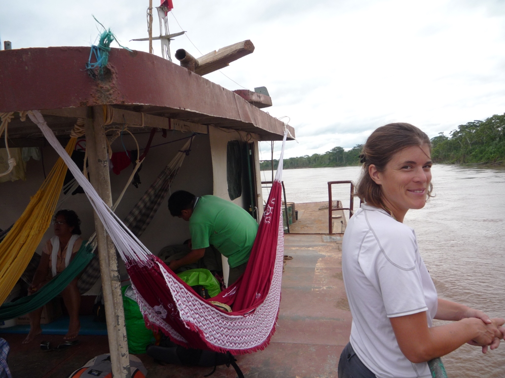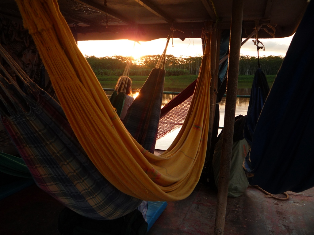 On demande si on peut monter à bord voyant d'autres passagers. Pas de problèmes ! Cool ! Ce dernier bateau qu'on emprunte pour rallier Yurimaguas et le plus 'roots' avec un vieux loup de mer comme capitaine, sympathique et un équipage à l'air patibulaire mais qui s'avère être lui aussi sympathique. On passe une dernière nuit sur l'Amazone avant de voir au loin les premières montagnes qui nous font tant rêver !