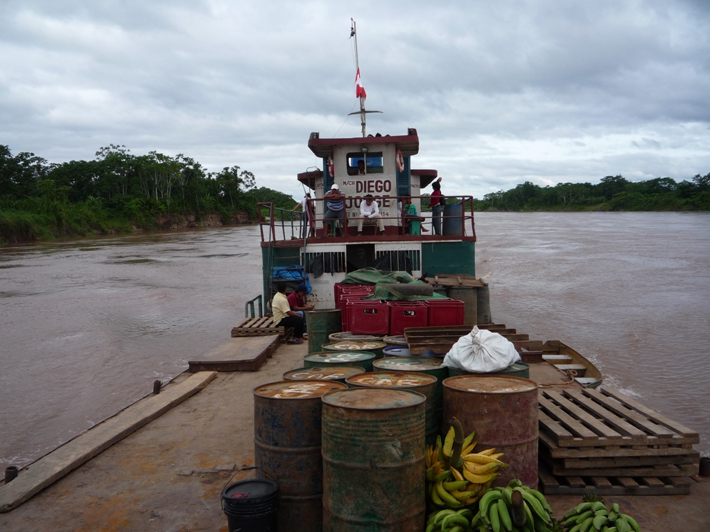 On se dirige au plus tôt vers le port sachant les problèmes qui persistent en aval du fleuve. On nous dit au port qu'il n'y a pas de bateau-hamac pendant les 2 prochains jours ... Pas envie de rester à Lagunas pendant tout ce temps. Il y a aussi un bateau rapide mais très cher. Du coup, ..., ..., ... On apprend des gens sur le port qu'il y a un autre bateau qui passe entre 14 et 15h mais c'est un bateau de frêt de marchandises. Il est 14h30, on décide d'attendre. Finalement à 16h arrive le Diego !