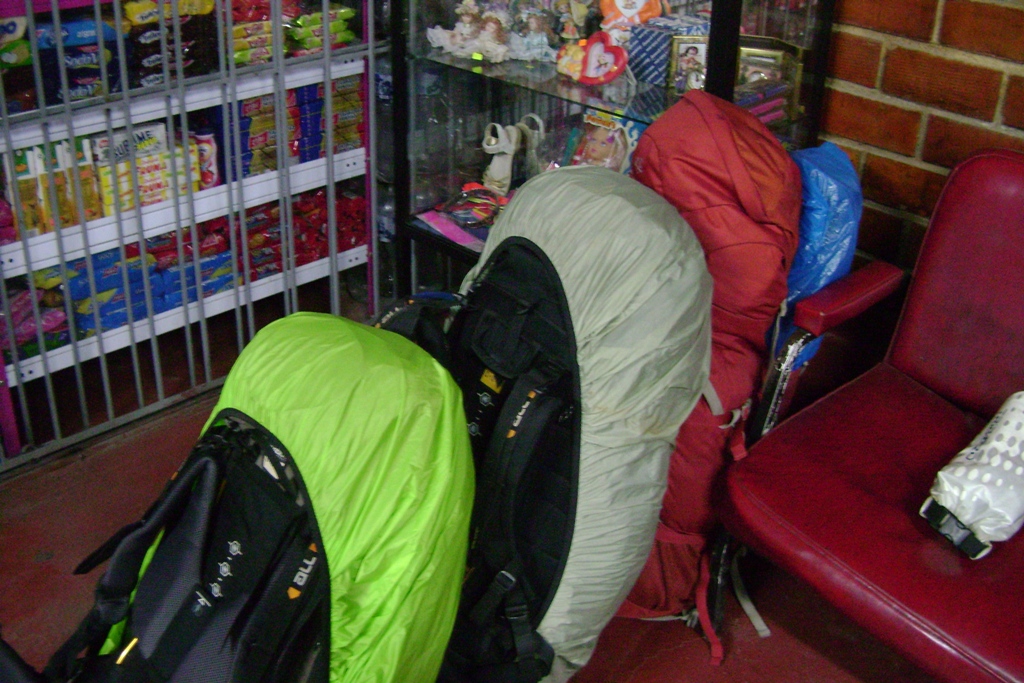 On fait ensuite les courses pour le trek de la cordillière Huyahuash ... Au menu, porridge le matin, pain et from le midi et nouilles chinoises le soir ... et ça tous les jours :-( Mais bon faut pas porter plus qu'il n'en faut ... On chope notre billet de bus pour la ville de départ du trek ... Après c'est la course pour louer notre tente, 3 matelas et le réchaud ; on mettra 2h30 et terminera juste avant la fermeture ! :-( On mange tous un 1/2 poulet (sauf Roxane) pour faire le plein d'énergie, on boucle nos sacs et on se couche à minuit pour un départ à 5h du matin ! Tous à bloc !