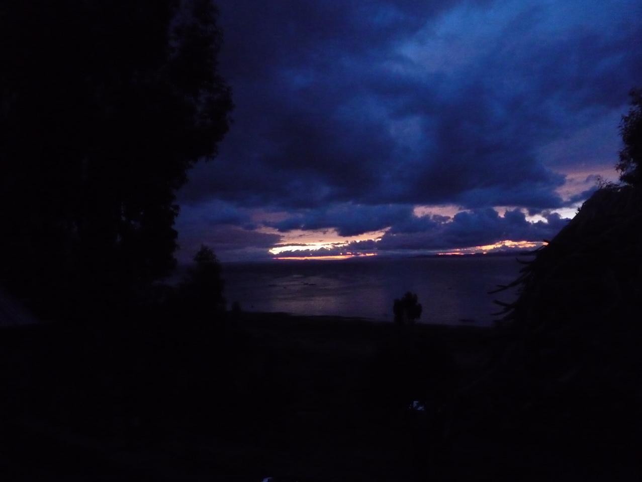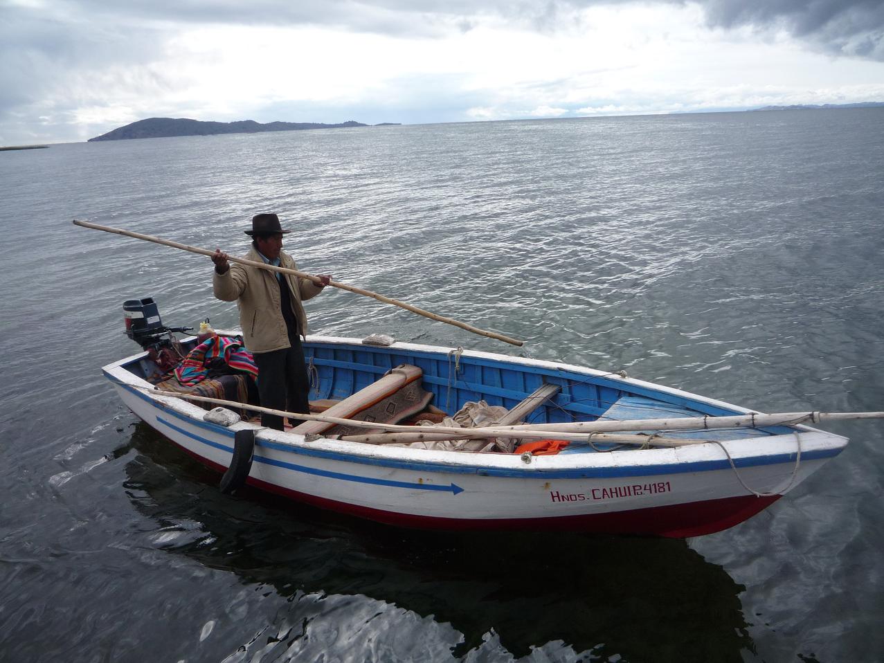 Le lendemain à 8h on embarque sur la barque d'Oscar avec nos 2 gros sacs à dos. Le temps est orageux, le vent se lève, la traversée de 2h se passe sans encombre mais quelques vagues nous ont quand même fait trembler ! Oscar, en passant, nous a bien énervé car au dernier moment il a demandé 20 soles de plus ! Mais c'est les aléas du voyage et de notre tête de touriste (on est trop grand pour faire péruvien !)