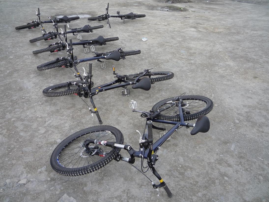 Au bout de 8km on se retrouve sur l'ancienne route qui n'est plus fréquentée et qui n'est pas mon plus asphaltée. Ca y est ça commence vraiment. Des à pics vertigineux, une piste étroite, détrempée. Ca envoie ! Les sensations sont agréables et la concentration intense. Le temps passe vite ! On passe sous des cascades décuplées par la récente pluie, on traverse des paysages qui commencent à devenir de plus en plus, au fur et à mesure que l'on descend, un autre monde. Ca y est c'est la jungle et on commence à voir la vallée où l'on doit arriver, le village de Yolosa. On commence à croiser des poules, des gens, on traverse une rivière l'eau à mi-genoux. Et ça y est ! Au bout de 4h de descente, les bras tremblants, l'arrivée est là. Et la bière :-)