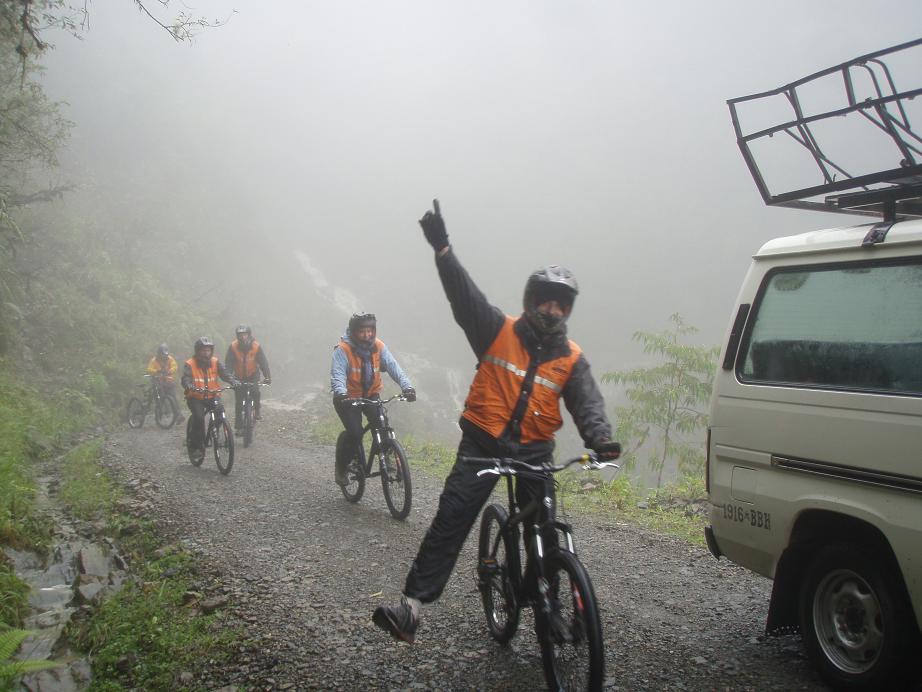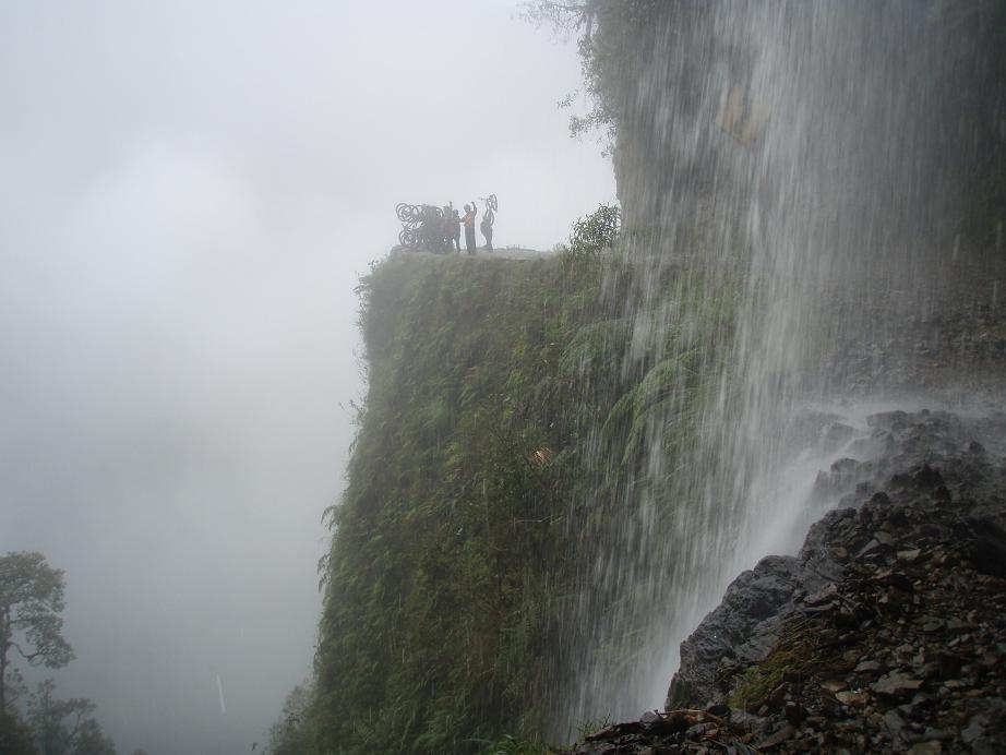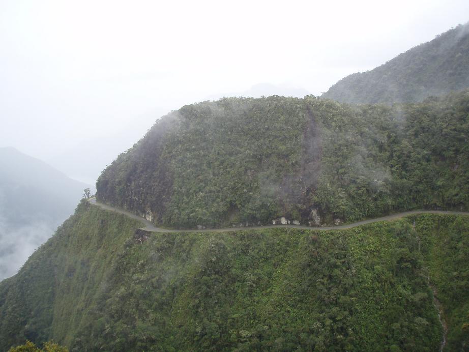 En fait cela consiste en une descente en VTT sur une des routes les plus meurtrières du monde ... Plus de 100 morts d'accidents de la route par an ... quand la nouvelle route n'était pas encore construite ! Depuis ça va mieux car elle n'est plus beaucoup fréquentée. Et il faut préciser que ce n'eétait pas tant la faute du tracé de la route que celle des chauffeurs qui sont remplis de testostérones, d'alcool, de fatigue, ... Sauf que sur cette route l'erreur ne pardonne pas. La route longue de 64km descend de 4700m à 1100m avec une largeur minimale de 3m et des à pics de plus de 700m ! Un mauvais coup de volant et ...