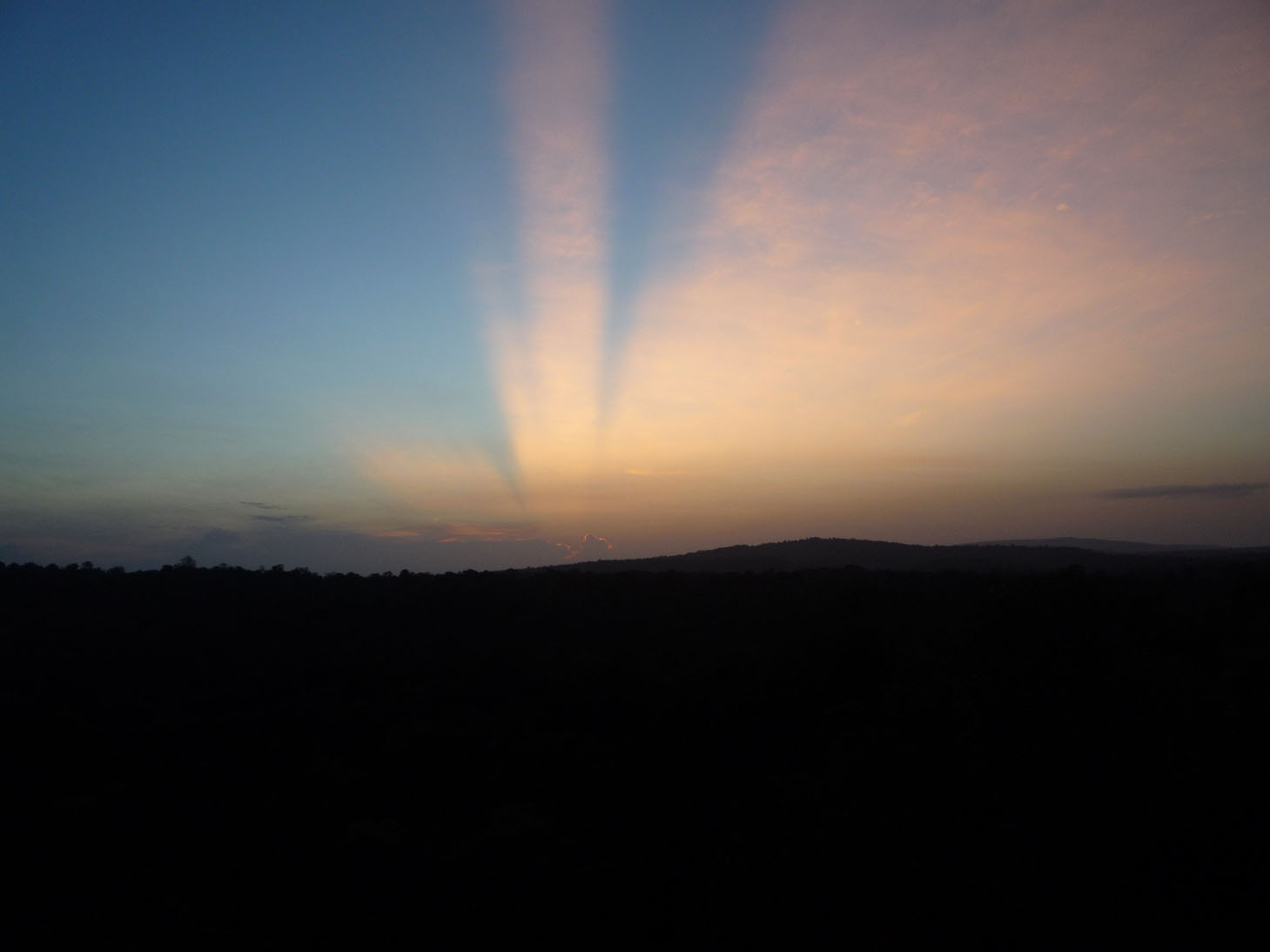 Là installation du carbet bâche (notre premier), c'est une construction où l'on peut accrocher les hamacs mais au-dessus du quel il faut tendre une bâche en cas de pluie. Et un peu de détente à l'ombre en attendant le coucher du soleil. Qui viendra ensuite magnifique avant de préparer le repas et passer une nuit délicieuse au bruit des singes hurleurs et autres animaux locaux. Réveil à 6h pour le lever du soleil (à l'exception de Ben et Vaness) et recoucher jusqu'à 8-9h.