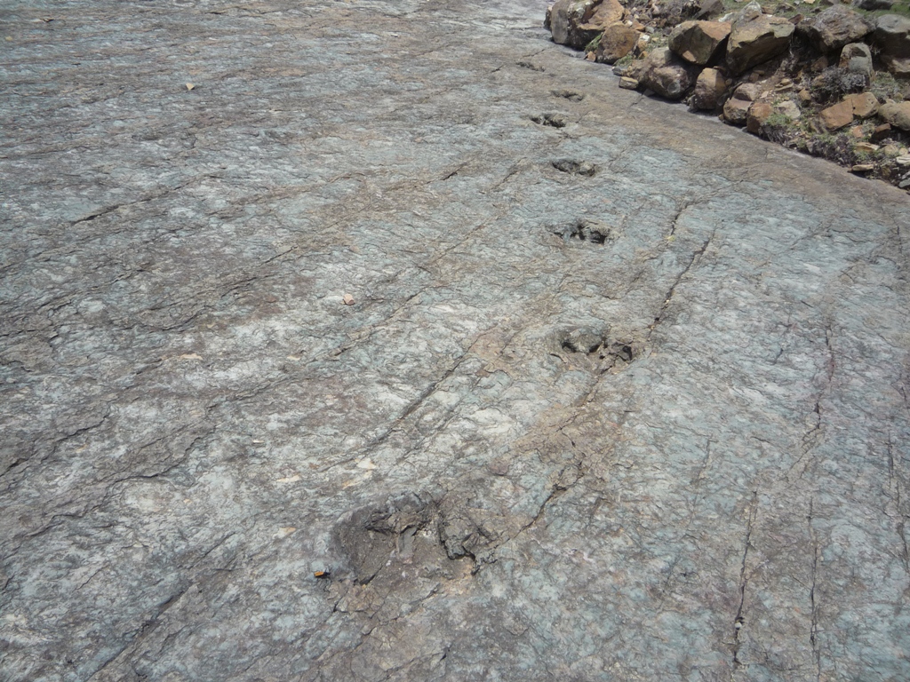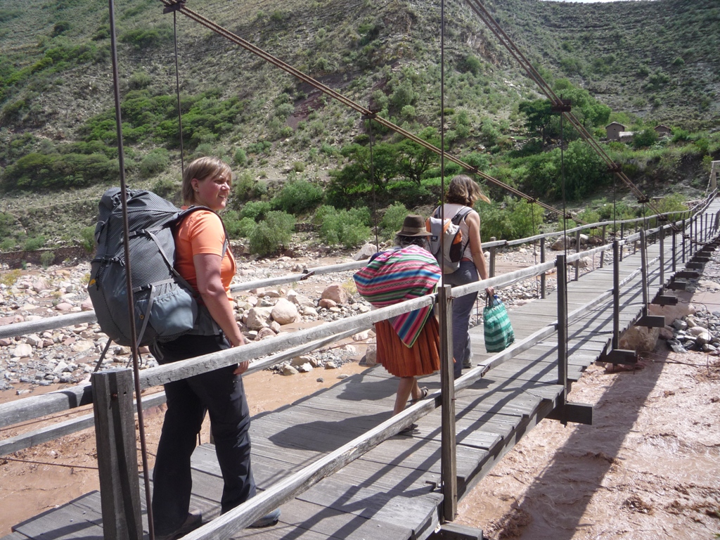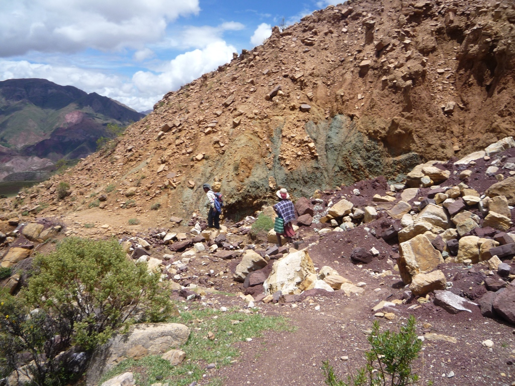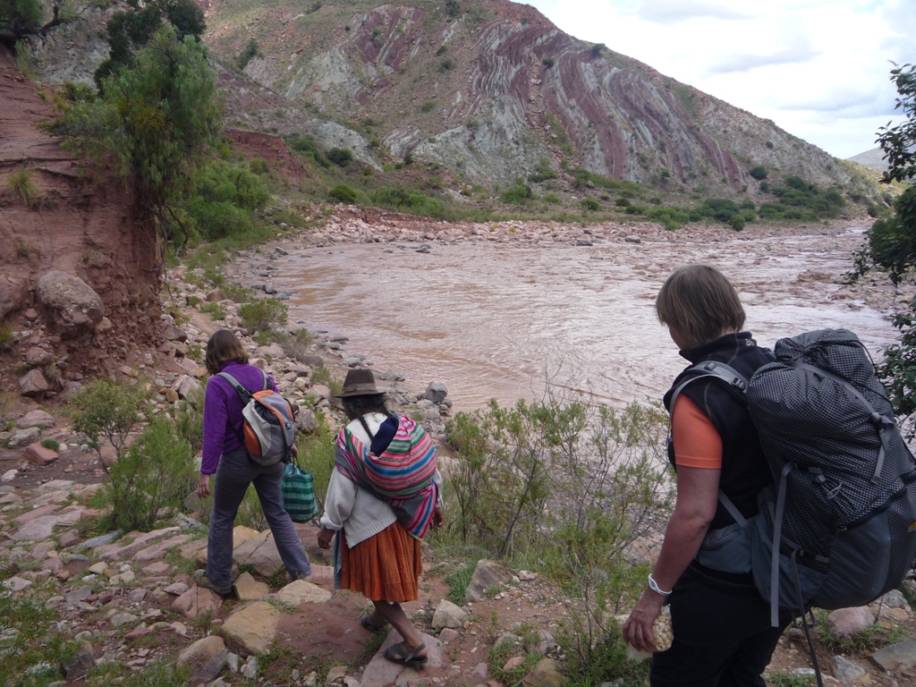 Le lendemain on a rendez-vous avec le guide proposé par l'association du village. Quelle n'est pas notre surprise de voir Sonia, la fille de 10 ans du chef du comité des cabanas ! Bon pas de soucis elle sait marcher, on le constate dans les 100 premiers mètres, une vraie chèvre ! 2km plus loin c'est Robert, son petit frère qui demande s'il peut nous accompagner. Ca roule ! Eux devant, nous derrière, on fait un petit détour direction Ninu Mayu, un lieu-dit où l'on peut voir des traces d'énormes dinosaures sédimentées dans une couche géologique qui affleure 6agrave; flanc de montagne. La route qui nous mène de Maragua à Potolo. Elle fait penser un peu (pour ceux qui connaissent) aux gorges du Daluis (en Alsace, dans les Alpes-Maritimes). 6h de rando où on en prend plein les yeux !