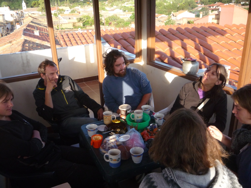 On décolle de Sucre en fin d'aprèm. On rencontre à la gare deux autres couples de français : Hélène & David et Florence & Gérald Baste. On se quittera pas de notre séjour à Samaipata !