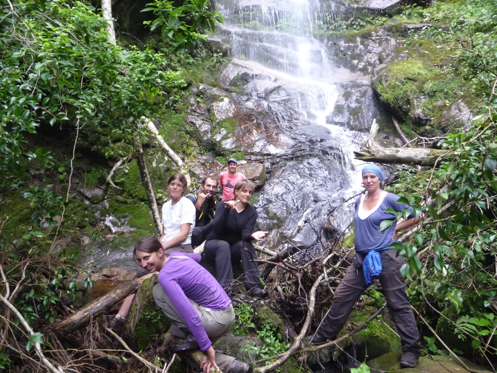 Le lendemain on décolle tous les 7 direction le Parque Nacional Amboro pour une rando de 2 jours. C'est un parc protégé avec des énormes bosquets de fougères arborescentes. On part accompagnés d'un guide, Carmelo, qui s'avèrera être un botaniste et un amoureux de sa forêt. Un vrai plaisir de randonner avec lui. On commence sac au dos par atteindre notre camp de base à 2h de marche. On continuera après sans sac parce que le chemin se rétrécie, ça descend jusqu'à une cascade puis ça remonte. Faut toujours rester concentré car les petites chutes sont nombreuses avec la boue, la pente, les racines. C'est un peu l'aventure, du moins c'est la première fois qu'on ressent autant la densité de la forêt. On arrive à nouveau à la nuit tombée au camp où on passe une super soirée au coin du feu.