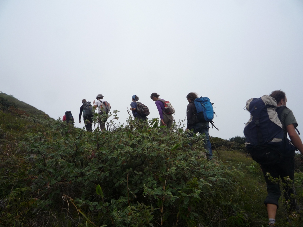 Le bus nous arrête à 5h du mat sur le bord de la route. On remonte un peu la route pour arriver au village. On sonne à un hôtel, pas de réponse ... Pas grave celui d'à côté nous ouvre grand les portes et est vraiment pas mal. Y'a une cuisine, on fait durer le petit-déj jusqu'à 10-11h ... Ca jargotte c'est cool.