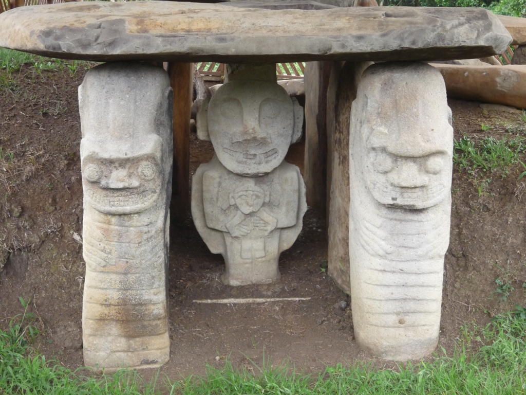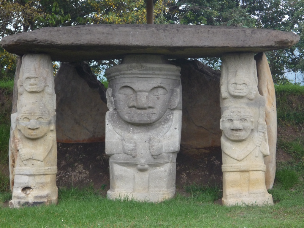 Le lendemain départ pour San Augustin bien connu de vous tous (non ?) car elle est au patrimoine de l'UNESCO et pourquoi ? Parce qu'il y a des centaines de monolithes qui datent du premier siècle après JC jusqu'au 8ème siècle. C'est la période de la culture san augustin, c'est à dire qu'ils sculptèrent de gigantesque oeuvres en pierre volcanique. Ces statues représentent des hommes, des hommes-animaux, des mélanges d'animaux. Ils représentaient sûrement des dieux ou des scènes de sacrifices (... d'enfants !) et étaient placés sur les tombes de l'élite de cette société.