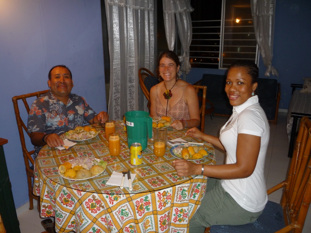 On mangera un midi à une sorte de cantine où on partage la table d'un couple péruvien-colombien, Jorge & Kathy qui vivent à New-York et viennent ici en vacances. On sympathisera avec eux et ils nous inviteront le soir même à manger chez eux. On apprendra donc finalement à faire le ceviche :-). Ils sont sympas, lui ressemble à fond à Danny de Vito, on passera une bonne soirée !