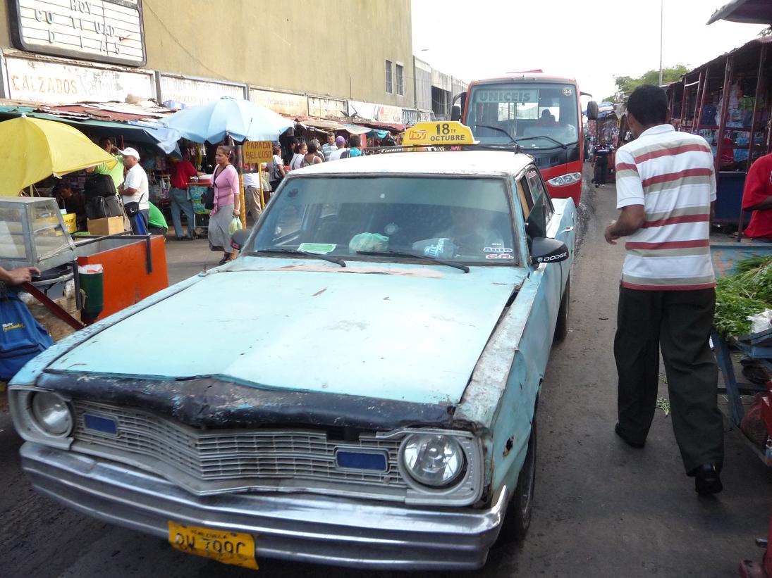 On repart donc de Cabo de la Vela, cette fois la jeep ne mettra que 2h puis on prend un taxi-co jusqu'à la ville frontière avec le Vénézuela. On y reprend un nouveau taxi-co, une vieille voiture américaine. Au Vénézuela ce n'est que des taxi-co en vielle voiture américaine, sûrement le reflet d'un passé prospère.