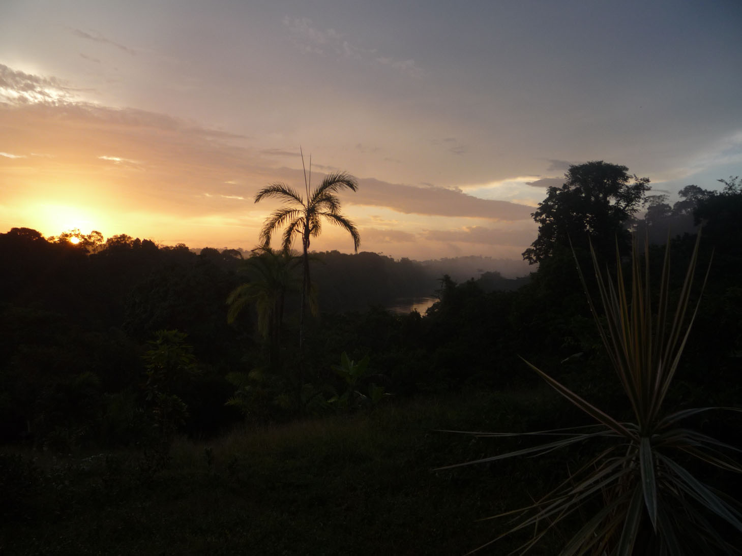 Après un arrêt à Iratoubo pour la douane (qui se situe à 200 km de la frontière) et à Sinnamary pour le repas, on arrive vers Angoulême après une bifurcation sur la N1 suivie de 4 km de piste. Et là, joli regroupement de carbets autour d'un carbet restaurant et sanitaire. On à un carbet pour nous 6 et en-bas Guillaume & cie ont loué le gîte juste à côté de la Mana, un des principaux fleuves de Guyane. Joli cadre idyllique pour un petit plongeon dans la force tranquille du courant du fleuve et surtout pour ce qui a été une de nos activités principales du week-end .... la pêche en rivière !