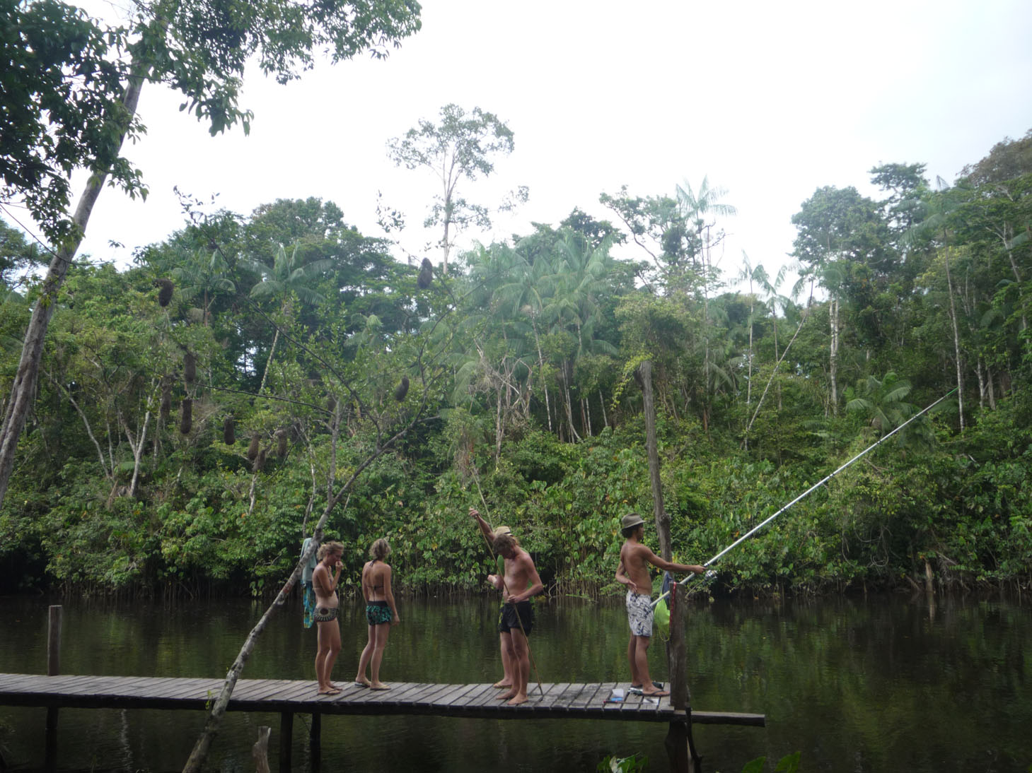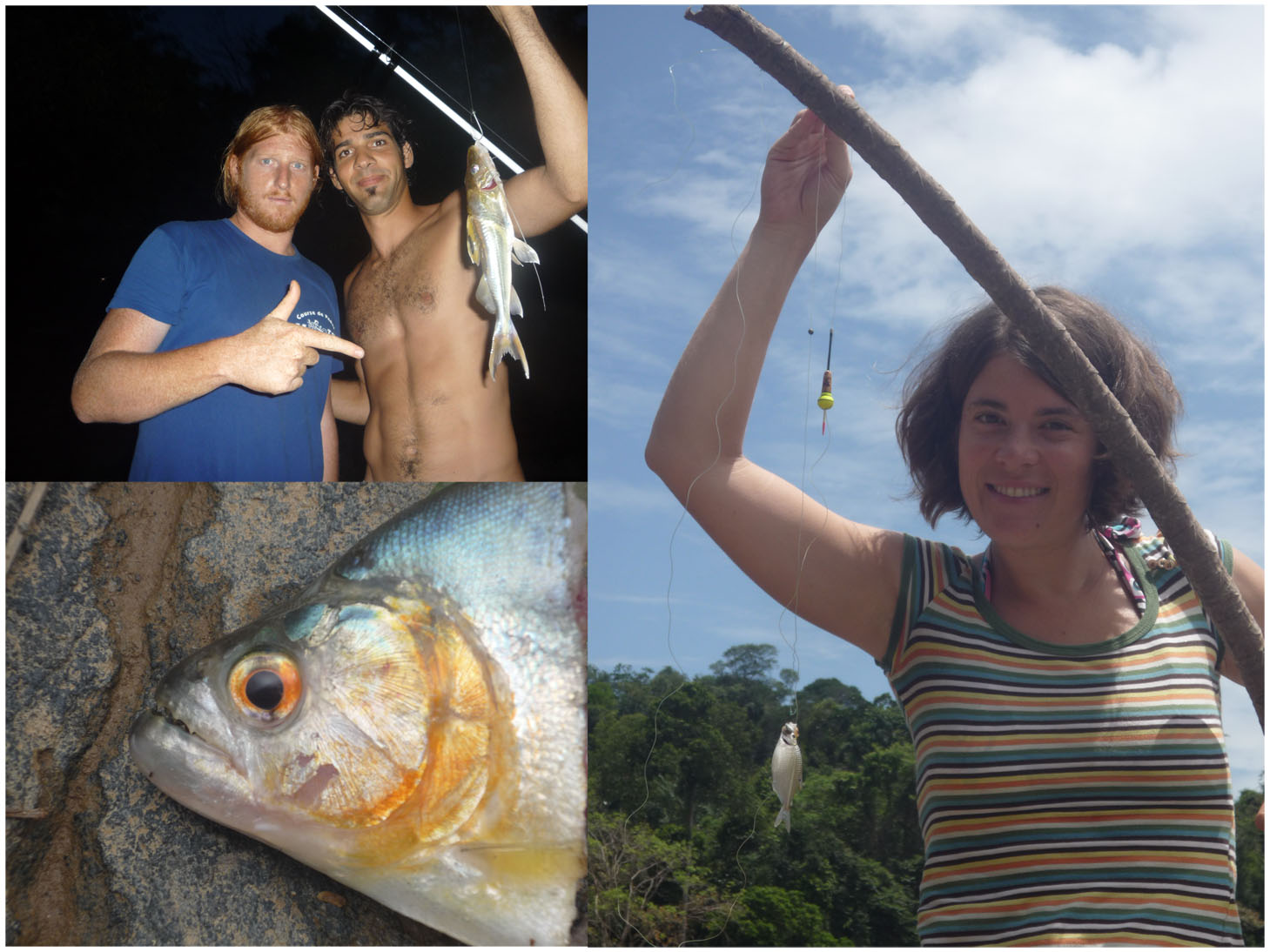 Au réveil, direction le cours d'eau pour la pêche, notre premier piranha, et plusieurs petits trucs pour pêcher au vif ! Mais pas grand chose quand même à part notre motivation !